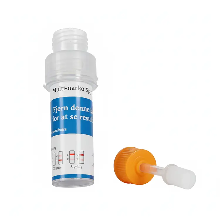 Med denne multitesten kan du raskt få svar på om en prøve inneholder spor av narkotiske stoffer. Testen bruker lateralt flowkromatografisk immunoassay, en avansert metode for presis påvisning av stoffer i oral væske.